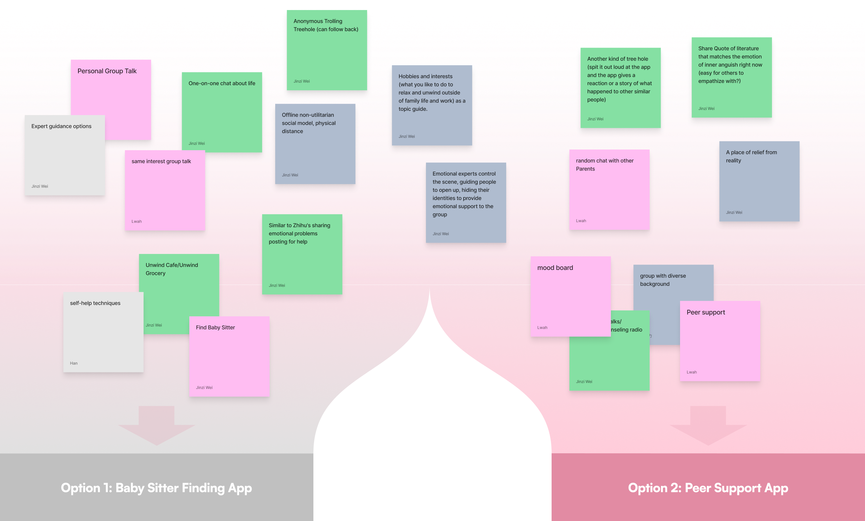 The affinity map pointed elsewhere. The #1 factor destroying parental joy wasn't logistics — it was emotional isolation. We pivoted to peer-to-peer support, inspired by how group dynamics in rehab programs create safety through shared experience. Parents helping parents.
